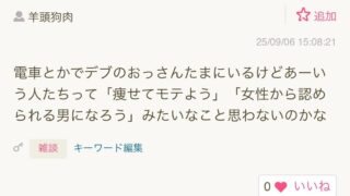 嫌儲女さん「デブの男性ってなんで痩せて女性からモテようと思わないの?」👈正論すぎると話題に