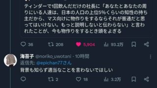 嫌儲女「ティンダーで飲んだ社長にあなたは日本の人口の上位5%くらいの知性の持ち主と言われた」→完全論破される…