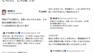 嫌儲暇空茜さん、サントリー新浪の裏垢説が噂される「アラ太郎」とレスバを始める