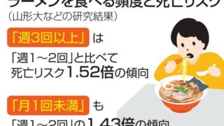 嫌儲🍜😇ラーメン「週3回以上」は早死にリスク増【塩分・高血圧・酒・脳卒中・心臓病】