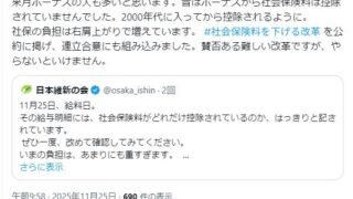 嫌儲吉村藩「昔はボーナスから社会保険料は控除がなく2000年代された、社会保険料を下げる改革、賛否あるがやりとげるぞ