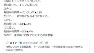 嫌儲高橋洋一「原油高に円高で対応するのは愚策」赤沢経産相、円高につながる金融政策「一つの選択肢」
