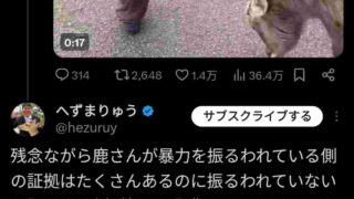 嫌儲へずまりゅう「鹿さんは中国人に暴力を振るわれていないと主張するやつは、振るわれていない証拠を出せ!」とアンチを論破