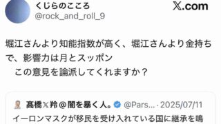 嫌儲移民反対派「イーロンが移民反対してる!ホリエモンと比べたら月とスッポン!はい論破」ホリエモン「イーロンが移民なの知ってる?」